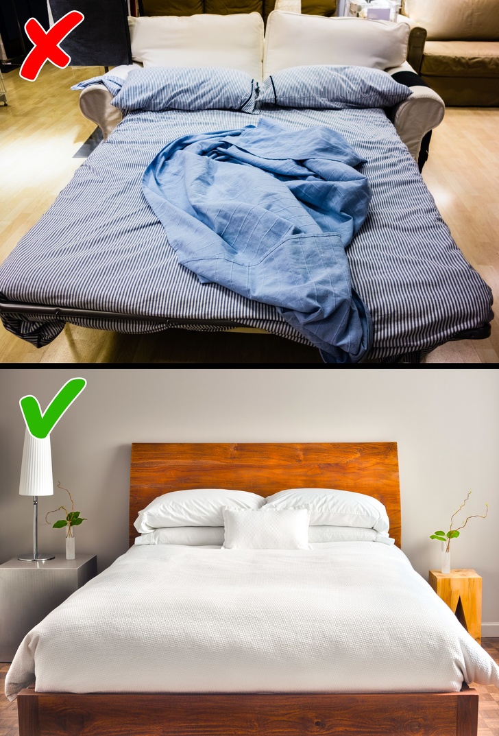 Đối với những không gian nhỏ, hãy tận dụng các món đồ nội thất đa năng. Ví dụ, giường có ngăn kéo để đựng đồ, ghế sofa có thể mở ra thành giường ngủ, bàn trà có ngăn chứa đồ. Đây là mẹo sắp xếp đồ đạc thông minh cho những căn hộ có diện tích hạn chế.